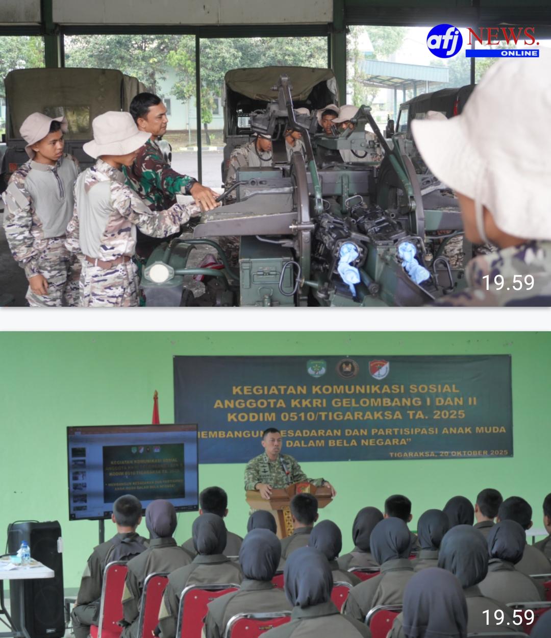 Tigaraksa, AFJNews.online – Komando Distrik Militer (Kodim) 0510/Tigaraksa terus memperkuat semangat kebangsaan di kalangan generasi muda melalui kegiatan Komunikasi Sosial (Komsos) bertema “Kesadaran dan Partisipasi Anak Muda dalam Bela Negara.” Kegiatan yang melibatkan peserta Kelompok Kegiatan Resimen Induk (KKRI) Gelombang I dan II Tahun Anggaran 2025 ini berlangsung di Makodim 0510/Tigaraksa dan Denrudal 003/ARK, Senin (20/10/2025).