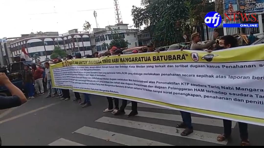 Medan, AFJNews.online – Para pendemo menuntut agar pihak imigrasi Sumatra Utara mengembalikan semua dokumen Tarik Nabi Mangaratua batu bara,Seorang warga Negara Indonesia Yang telah menjalani penahan 11 bulan dirumah detensi imigrasi (Rudenim) Belawan, Penahan Tersebut Berkaitan dengan Penonaktifan KTP Tarik Dan dituding Menggunakan Dokumen Kependudukan Palsu,