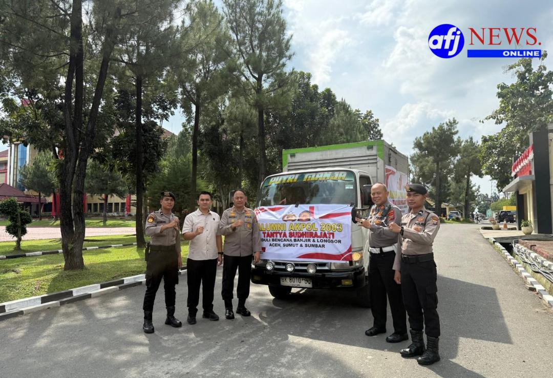Medan, AFJNews.online – Kamis, 4 Desember 2025, Alumni Akpol 2003 Batalyon Tantya Sudhirajati menunjukkan kepedulian dan solidaritasnya dengan memberangkatkan bantuan kemanusiaan untuk korban bencana banjir dan longsor yang menimpa Provinsi Aceh, Sumatera Utara, dan Sumatera Barat. Pengiriman bantuan tersebut dilepas secara simbolis dari Mapolda Sumut oleh Ketua Alumni Akpol 2003, Kombes Pol. Dr. Teuku Arsya, SIK., MH., yang diwakili oleh para Alumni Akpol 2003 yang saat ini bertugas di jajaran Polda Sumut.