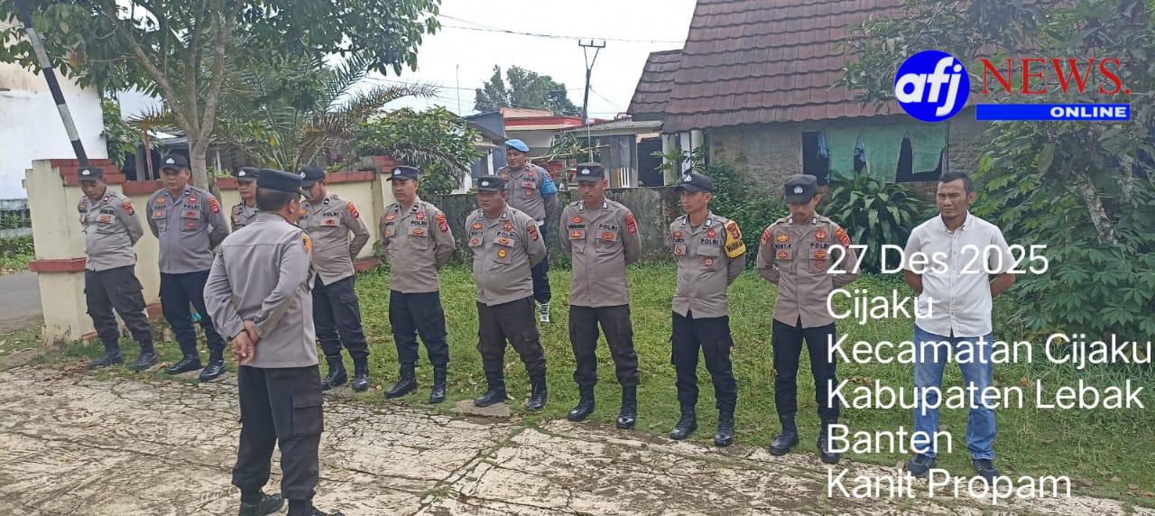 Lebak. AFJNews.online – Untuk menjaga Harkamtibmas tetap aman dan terkendali di Darkum Polsek Cijaku, Kapolsek Cijaku IPTU Aminarto didampingi para Kanit. Dan seluruh anggota Polsek Cijaku laksanakan Giat apel siaga OPS Nataru pada hari Sabtu tanggal 27 Desember 2025 dari jam 08.00 Wib sampai dengan selesai bertempat di Mapolsek Cijaku polres Lebak. Sab tu (27/12/2025).