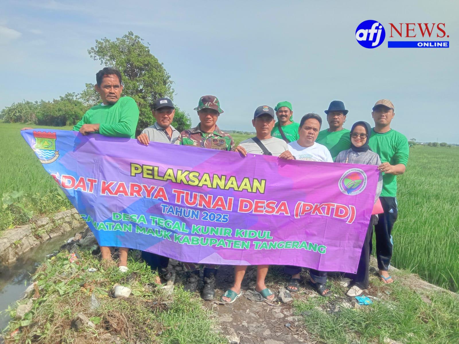 Tigaraksa, AFJNews.online – Suasana gotong royong terlihat di Desa Tegal Kunir Kidul, Kecamatan Mauk, Kabupaten Tangerang, Minggu (9/11/2025) pagi. Sejak pukul 07.00 WIB, warga setempat bersama aparat TNI dari Koramil jajaran Kodim 0510/Tigaraksa melaksanakan kegiatan Padat Karya Tunai Desa (PKTD) berupa pembersihan saluran irigasi tersier di Kampung Cibentek, RT 020 RW 005, wilayah Kejaroan 5.