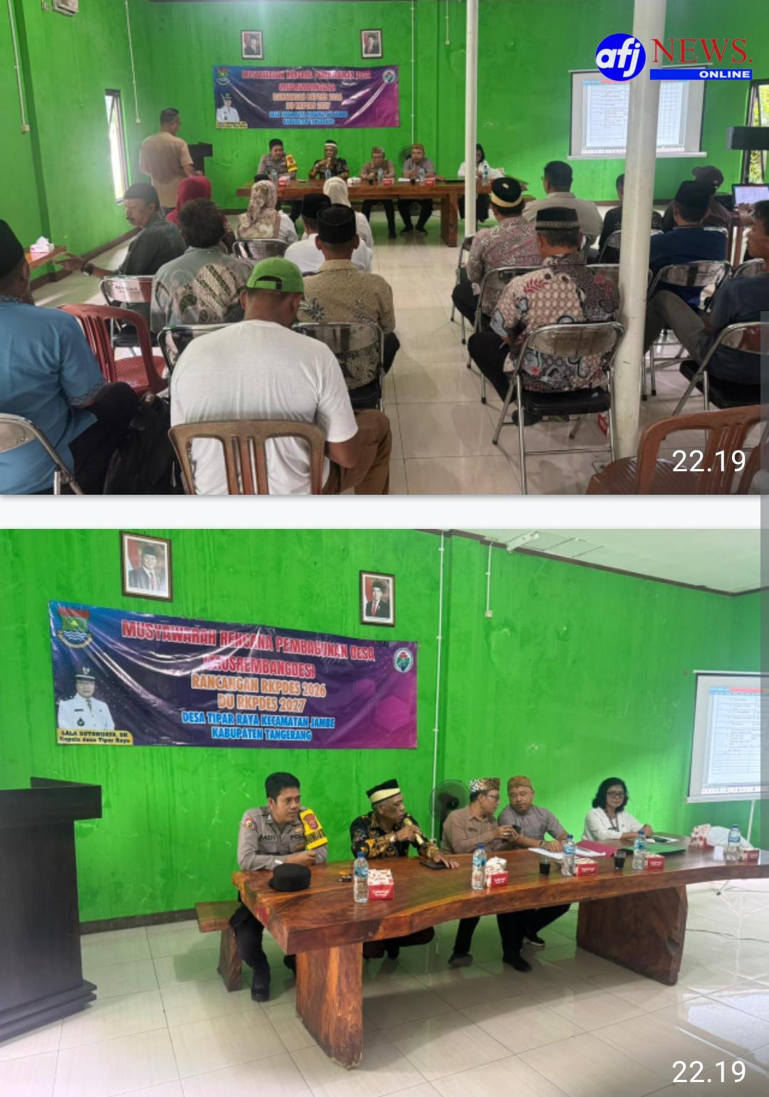 Tigaraksa, AFJNews.online — Dalam rangka mendukung pembangunan berkelanjutan dan meningkatkan sinergi antara pemerintah desa dengan masyarakat, Bhabinkamtibmas Desa Tipar Raya, Brigadir Didit F, menghadiri kegiatan Musyawarah Rencana Pembangunan Desa (Musrenbangdes) yang diselenggarakan di Aula Kantor Desa Tipar Raya, Kecamatan Jambe, Kabupaten Tangerang, pada Jumat (03/10/2025) pukul 09.00 WIB hingga selesai.