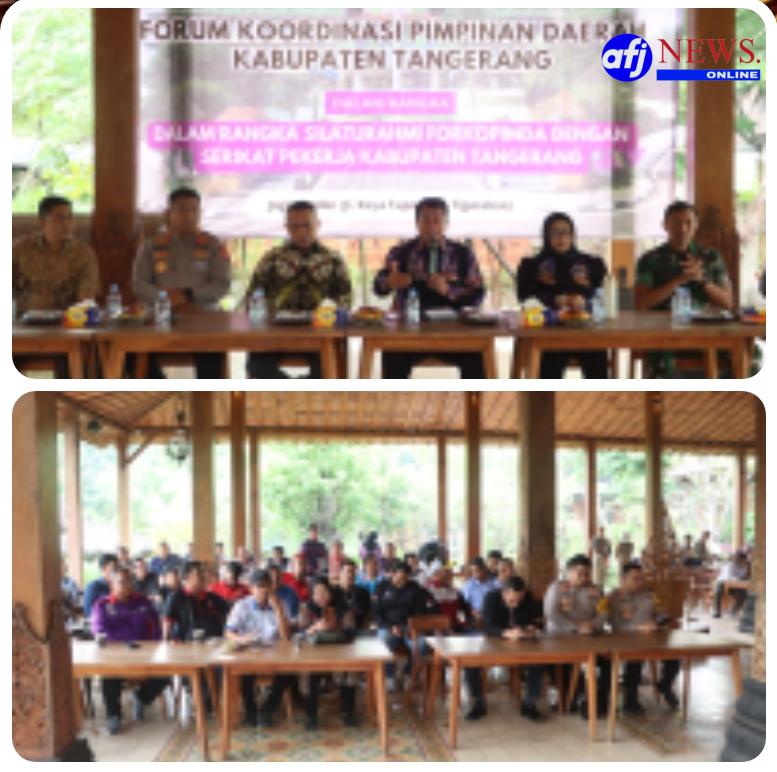 Tangerang, AFJNews.online – Bupati Tangerang, Moch. Maesyal Rasyid didampingi Wakil Bupati Tangerang, Intan Nurul Hikmah, memimpin Rapat Forum Koordinasi Pimpinan Daerah (Forkopimda) dalam rangka silaturahmi bersama serikat kerja Kabupaten Tangerang. Kegiatan tersebut digelar di Joglo Jambe, Kecamatan Jambe, Kamis (2/10/25).
