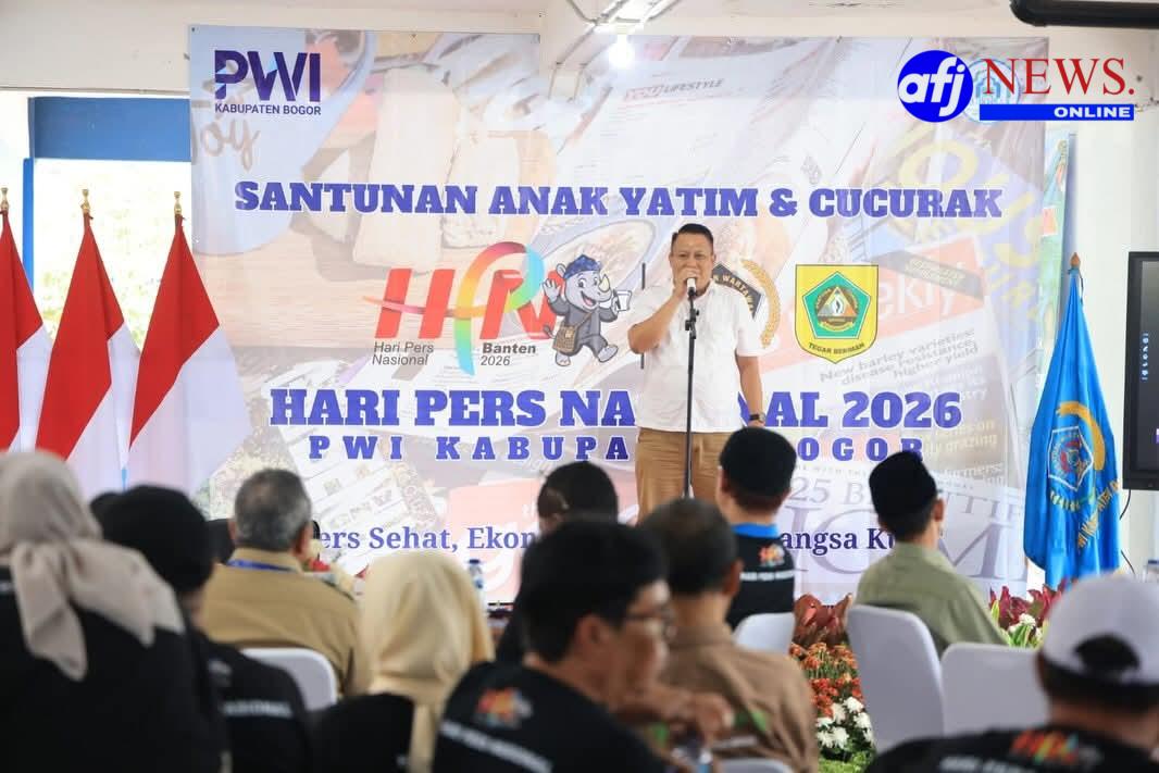 Cibinong, AFJNews.online – Bupati Kabupaten Bogor Rudy Susmanto, S.Si menyatakan bahwa pers memiliki peran strategis dalam menentukan arah kebijakan pembangunan bangsa, khususnya di tengah pesatnya transformasi media digital. Hal ini disampaikan saat menghadiri kegiatan santunan anak yatim dalam rangka peringatan Hari Pers Nasional (HPN) 2026 yang diinisiasi oleh PWI Kabupaten Bogor di Gedung Graha Wartawan, Senin (9/2).