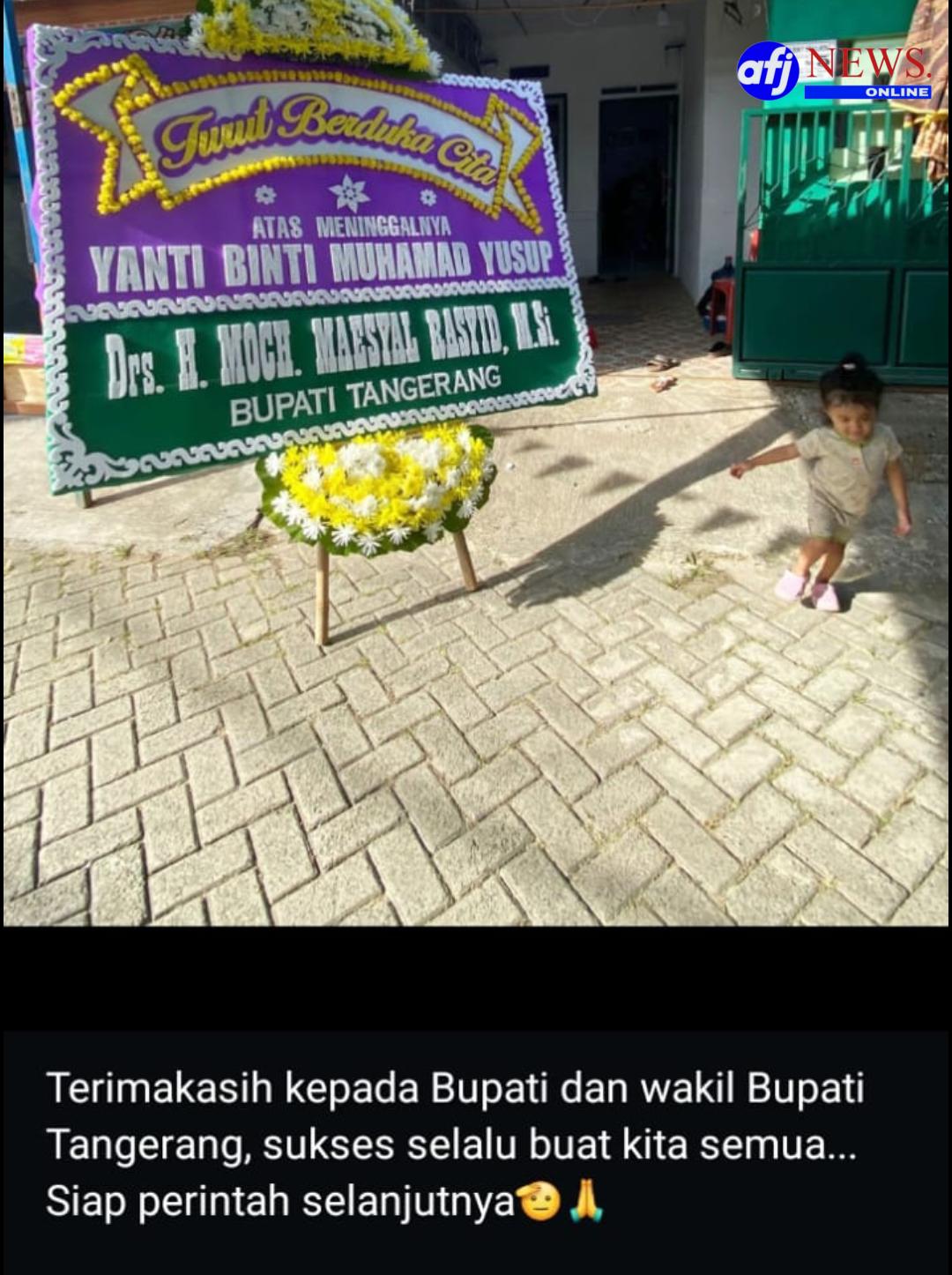 Tangerang, AFJNews.online – Bupati kabupaten Tangerang turut berdukacita atas meninggalnya ibu Yanti yang berumur 29 tahun dicikasungka Solear kabupaten Tangerang Dengan mengirimkan bunga bela sungkawa atas meninggalnya ibu Yanti beliau turut prihatin kerna beliau sering menyampaikan bahwa saat ini pengobatan tubertosis atau TBC digratiskan di seluruh RS kabupaten Tangerang jangan pernah malu dan males untuk berobat kerna kesehatan diri itu penting.,