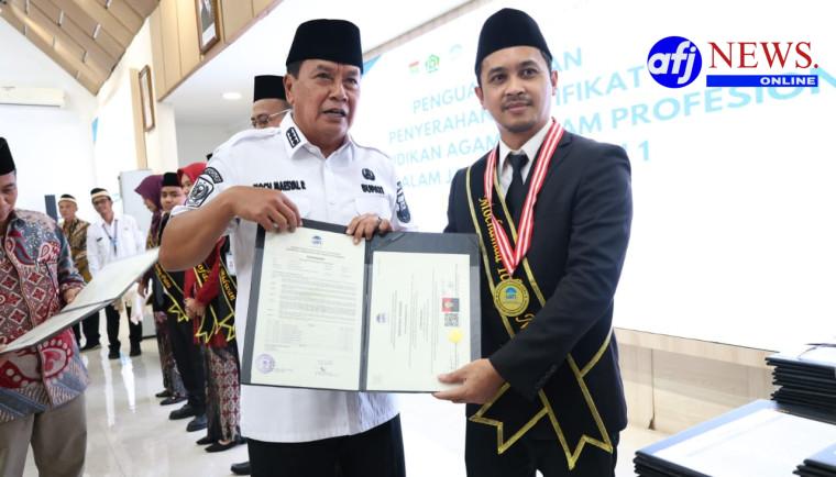 Kompetensi dan sertifikasi itu bukan sekadar pengakuan, tetapi juga amanah besar untuk meningkatkan mutu pendidikan agama di Kabupaten Tangerang,” tandasny