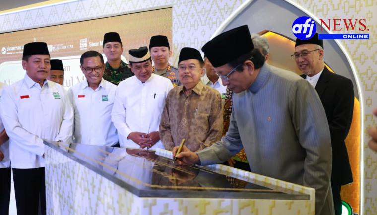 TANGERANG, AFJNews.online – Bupati Tangerang Moch Maesyal Rasyid bersama Menteri Agama (Menag) RI Nasaruddin Umar dan Ketua Umum Dewan Masjid Indonesia (DMI) HM Jusuf Kalla menghadiri peresmian Masjid Raya Baitul Mukhtar BSD City, Kecamatan Pagedangan, Jumat (29/8/25). Selain pemukulan bedug secara bersama-sama, Menag RI menandatangani prasasti Masjid Raya Baitul Mukhtar.
