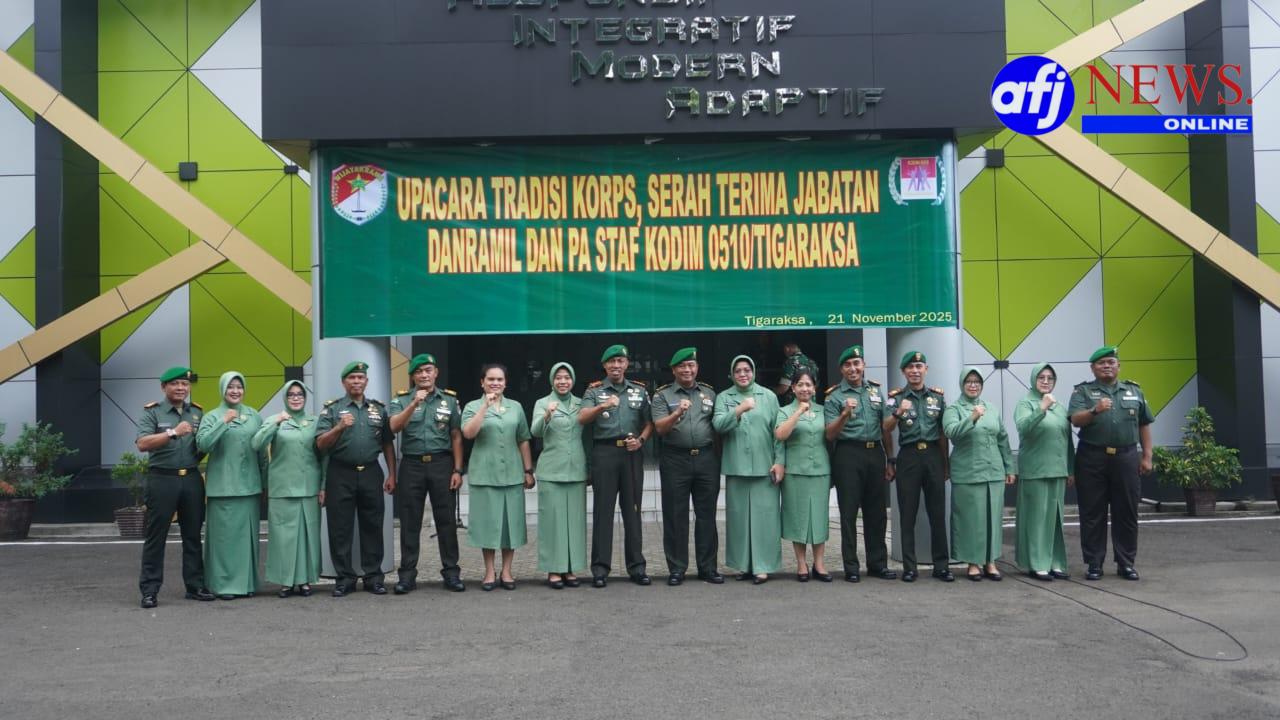 Tigaraksa, AFJNews.online – Komando Distrik Militer (Kodim) 0510/Tigaraksa di bawah Korem 052/Wijayakrama menggelar upacara resmi pemberhentian dan pengangkatan dalam jabatan Perwira Menengah (Pama) di Markas Kodim, Jumat (21/11/2025).