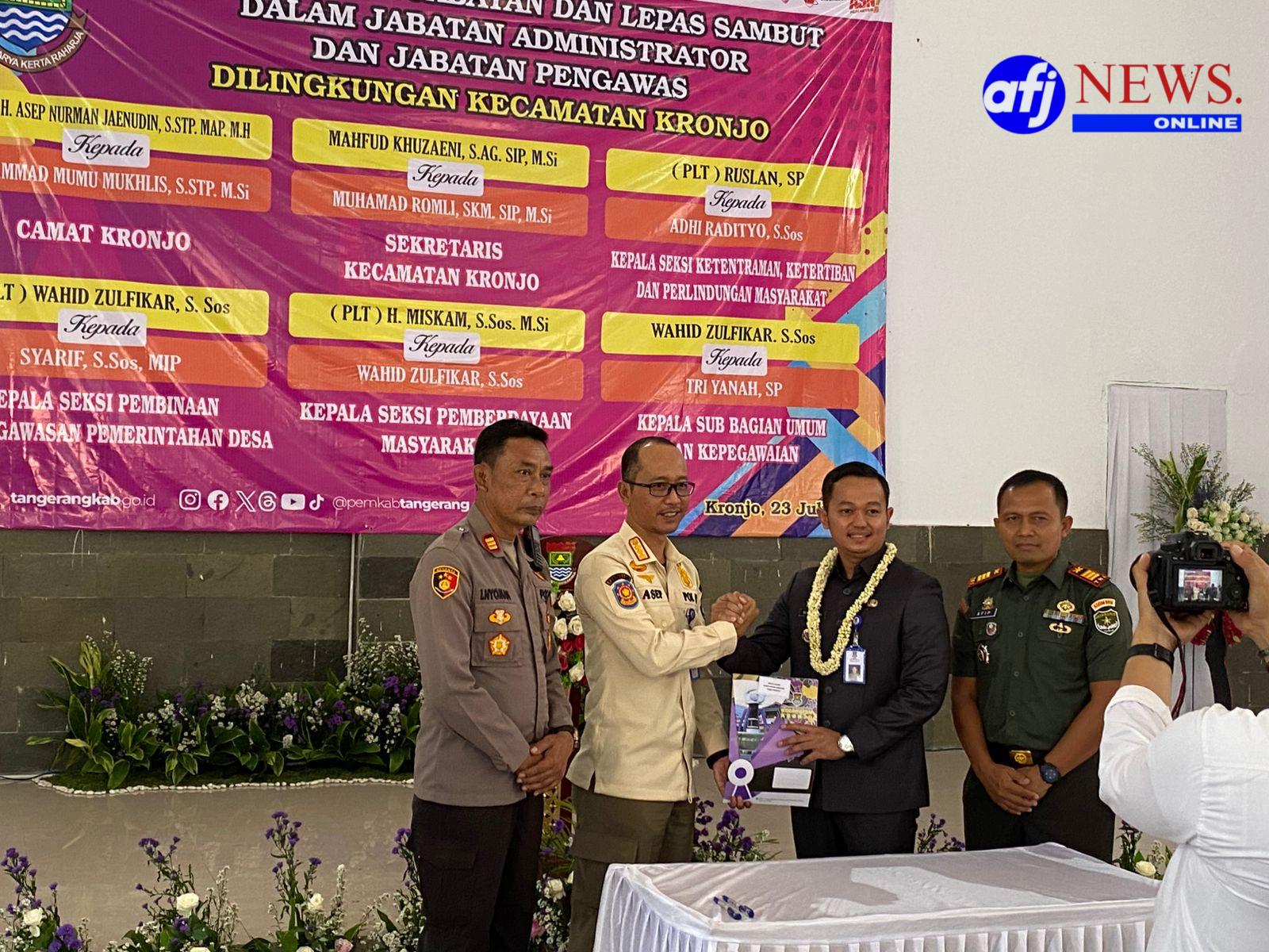 Serah Terima Jabatan (Sertijab) dan lepas sambut dalam Jabatan Administrator dan Jabatan Pengawas D lingkungan Kecamatan Kronjo Kabupaten Tangerang, Rabu (23/07/2025).