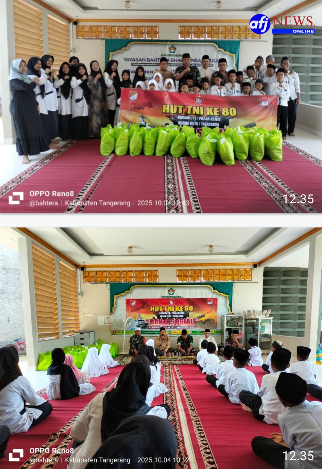 Tigaraksa, AFJNews.online – Komandan Koramil 11/Pasar Kemis, Kodim 0510/Trs Mayor Arm Sidik Abriyanta memberikan bantuan sembako kepada yatim di Yayasan Bahtera Bakti Insan Mulia Kampung Leles Gaok Desa Pengadegan Kecamatan Pasar Kemis Kabupaten Tangerang, Sabtu (04/10/2025).
