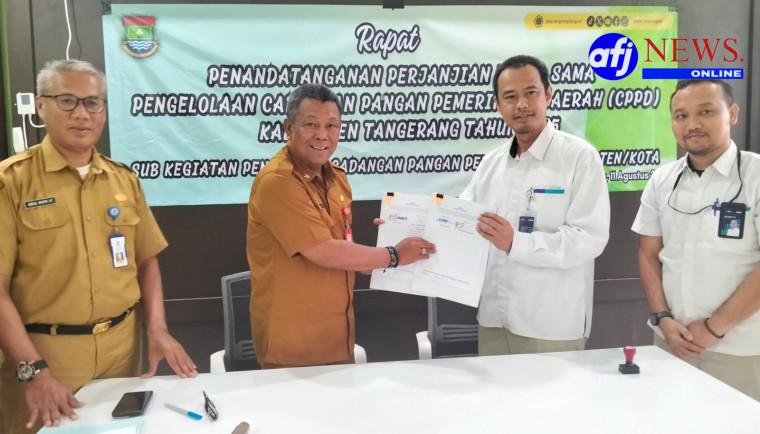 Tangerang, AFJNews.online – Dinas Pertanian dan Ketahanan Pangan (DPKP) Kabupaten Tangerang dan Perum Bulog Cabang Tangerang melaksanakan Penandatanganan Perjanjian Kerjasama Pengelolaan Cadangan Pangan Pemerintah Daerah (CPPD) Kabupaten Tangerang Tahun 2025.