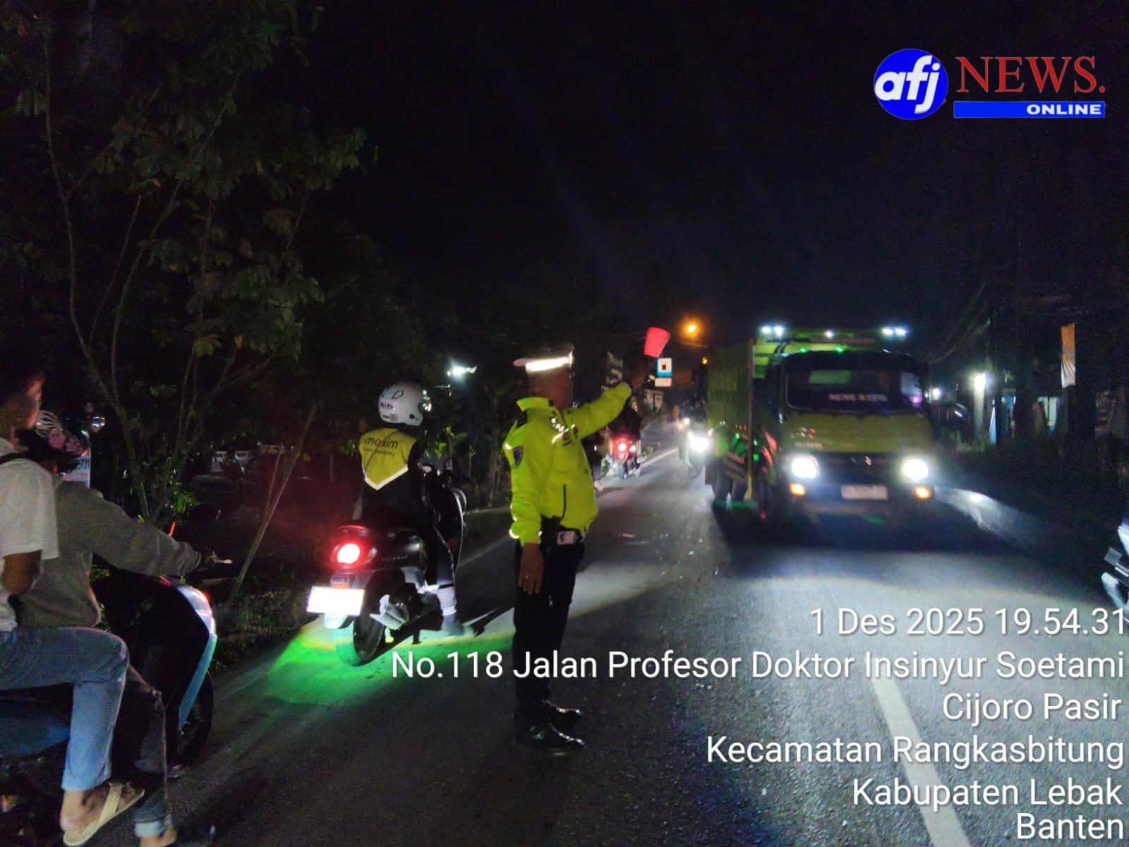 Lebak, AFJNews.online – Satuan Lalu Lintas (Sat Lantas) Polres Lebak Polda Banten bergerak cepat melakukan pengaturan arus lalu lintas untuk mengantisipasi kemacetan akibat adanya kendaraan mogok di tengah badan jalan, Senin (1/12/2025) malam.