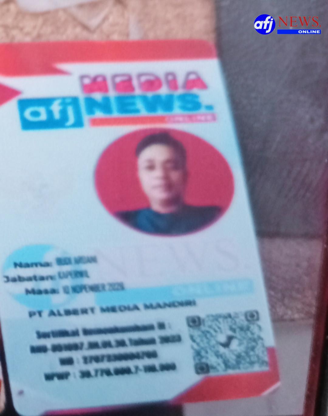 SINTANG/KALBAR, AFJNews.online – Seorang anggota media AFJNews, Budi A, melaporkan kehilangan Kartu Tanda Anggota (KTA) miliknya yang diduga telah disalahgunakan oleh pihak yang tidak bertanggung jawab.