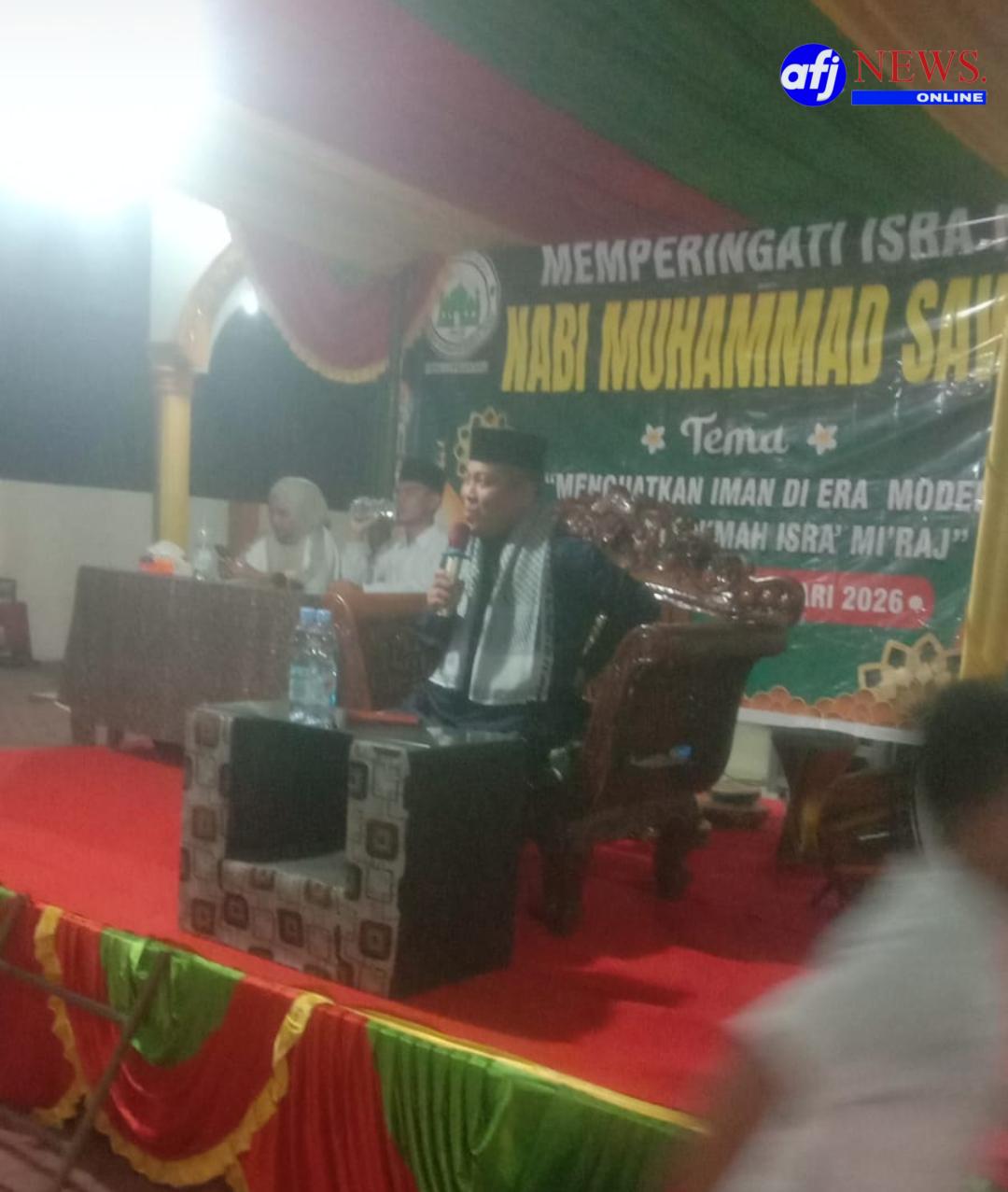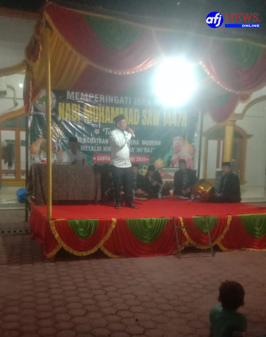 LABURA, AFJNews.online – Ikatan Remaja Masjid ( Irmi ) Nurul Iman Pinang Lombang Atas, Desa Sei Raja, Kecamatan NA IX-X, Kabupaten Labuhanbatu Utara sukses menggelar acara peringatan Isra Mi’raj 1447 H bertempat di halaman Masjid Nurul Iman, Sabtu ( 17/01/2026 ). Acara ini dihadiri oleh masyarakat Dusun Pinang Lombang Atas, termasuk ibu ibu dan bapak bapak.