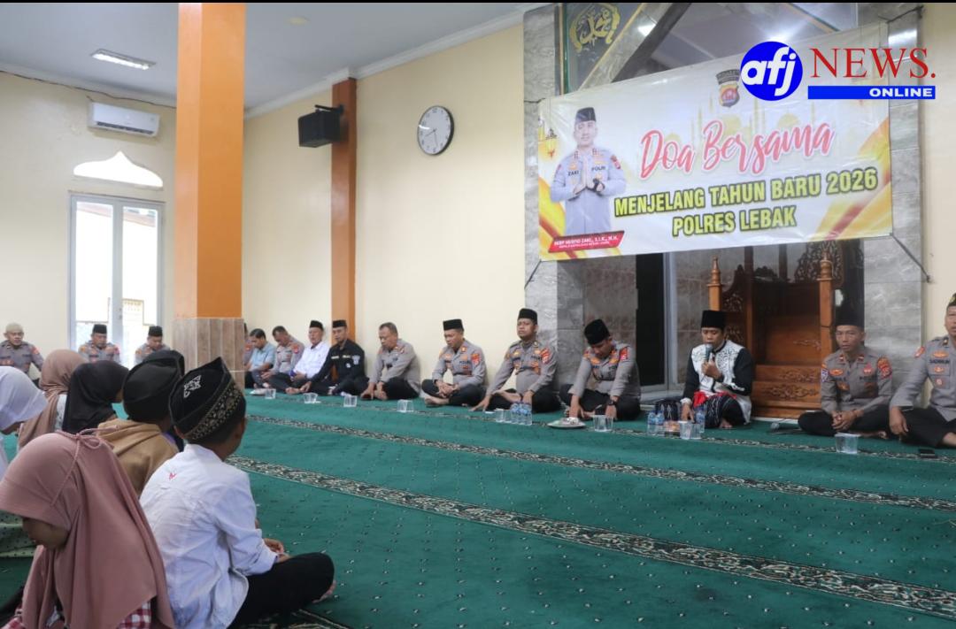 Lebak, AFJNews.online – Menjelang pergantian Tahun Baru 2026, Polres Lebak Polda Banten menggelar kegiatan Do’a Bersama dan Santunan Anak Yatim yang berlangsung di Masjid Al Fitrah Polres Lebak, Kamis (18/12/2025).