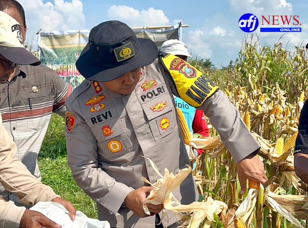 ASAHAN, AFJnews.online – Kapolres Asahan AKBP Revi Nurvelani, S.H, S.I.K., M.H menghadiri kegiatan Panen Jagung Kuartal IV Tahun 2025 di Dusun V, Desa Rawang Pasar V, Kecamatan Rawang Panca Arga, Kabupaten Asahan, Jumat (05/12/2025). Kegiatan ini merupakan bagian dari program swasembada pangan yang terus didorong di wilayah hukum Polsek Kota Kisaran.