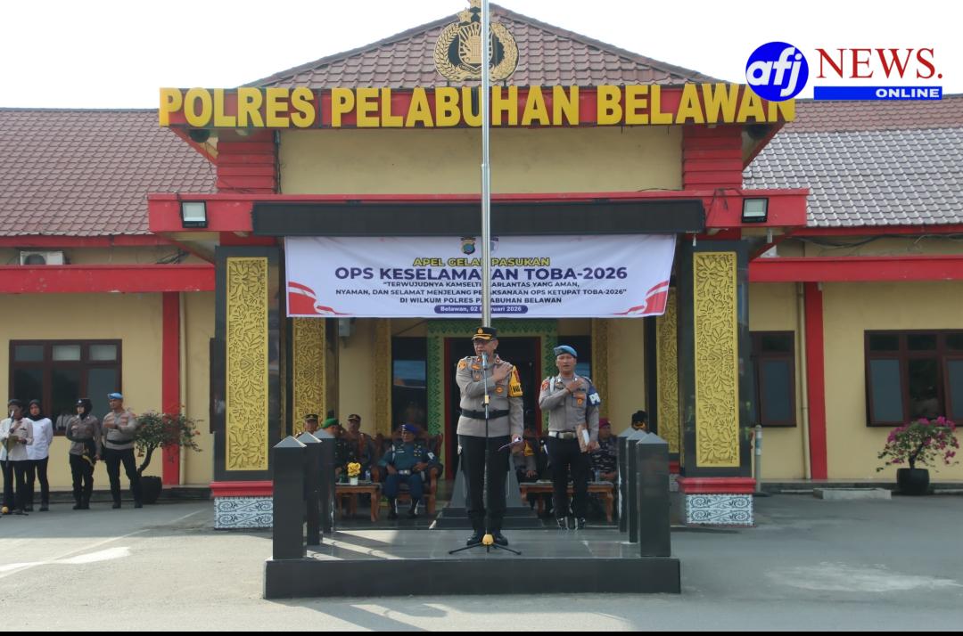 BELAWAN, AFJNews.online – Polres Pelabuhan Belawan pada Senin, 2 Februari 2026 melaksanakan Apel Gelar Pasukan Operasi Keselamatan Toba 2026 bertempat di Lapangan Apel Polres Pelabuhan Belawan. Kegiatan ini dilaksanakan sebagai bentuk kesiapan personel dan sarana prasarana dalam mendukung pelaksanaan operasi kepolisian di bidang lalu lintas.