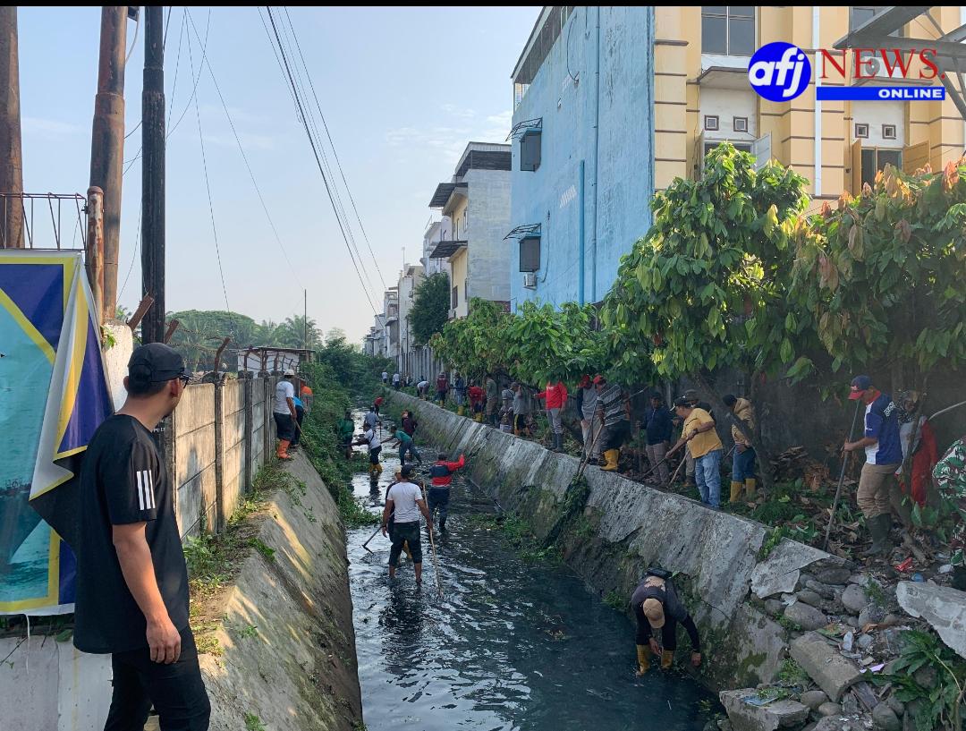Belawan, AFJNews.online — Kegiatan gotong royong massal yang melibatkan perangkat Kecamatan Medan Deli bersama warga Komplek AL Barakuda berlangsung tertib dan lancar dengan partisipasi 166 peserta. Kegiatan ini turut dihadiri oleh Camat Medan Deli, M. Aidiel Putra Pratama, SSTP, MSP, serta diikuti oleh 92 kepala lingkungan (kepling), 32 aparatur sipil negara (ASN), 27 personel P3SU, dan 15 dari unsur SDAMBK. Kolaborasi lintas unsur ini mencerminkan sinergi antara pemerintah dan masyarakat dalam menjaga kebersihan lingkungan, sekaligus sebagai bentuk optimalisasi kebijakan WFH (work from home) yang dimanfaatkan untuk kegiatan produktif di wilayah masing-masing.
