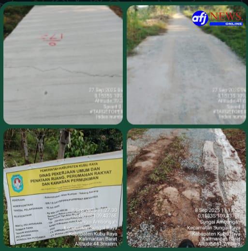 Kubu Raya, AFJNews.online – Ketua Dewan Pimpinan Cabang Lembaga Investigasi Negara (LIN) Kubu Raya, Nurjali S.Pd.I, angkat bicara terkait pembangunan jalan Kumpai–Tebang Kacang yang diduga sarat permainan oleh pihak pemborong, CV Rimpang Bumi Katulistiwa, serta konsultan CV Buana Lintang Katulistiwa.