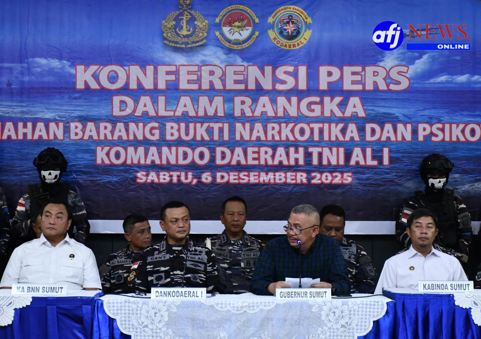 MEDAN, AFJNews.online – Komando Daerah Angkatan Laut I memusnahkan barang bukti narkotika jenis ketamine seberat 41,7 kilogram di Gedung Yos Sudarso, Mako Kodaeral I Medan. Kegiatan yang berlangsung pada Sabtu pukul 10.00 WIB tersebut menjadi bukti konsistensi TNI AL dalam menindak penyelundupan narkoba melalui jalur laut serta memperkuat keamanan perairan yurisdiksi nasional.