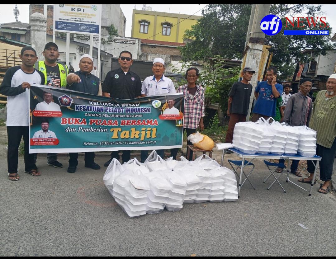 BELAWAN, AFJNews.online – Dalam rangka semarakan Siar Islam Kesatuan Pelaut Indonesia (KPI) Cabang Belawan laksanakan bakti sosial di Bulan Suci Ramadhan memberikan dan membagikan takjil pada masyarakat untuk berbuka puasa pada masyarakat Belawan yang dilaksanakan di Jalan Bangka Timur nomor 52 Kelurahan Belawan Dua Kecamatan Medan Belawan Selasa Tanggal (10/3/2026)