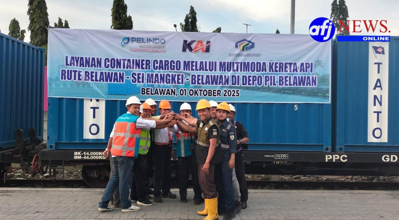 BELAWAN, AFJNews.online – Layanan Container Multimoda Kereta Api Rute Belawan-Sei Mangkei-Belawan (Sebaliknya) Resmi Beroperasi pertanggal 1 Oktober 2025. Hal ini ditandai dengan sesi foto bersama dengan masing-masing pihak yang berkolaborasi di Lapangan Depo Belawan PT Prima Indonesia Logistik