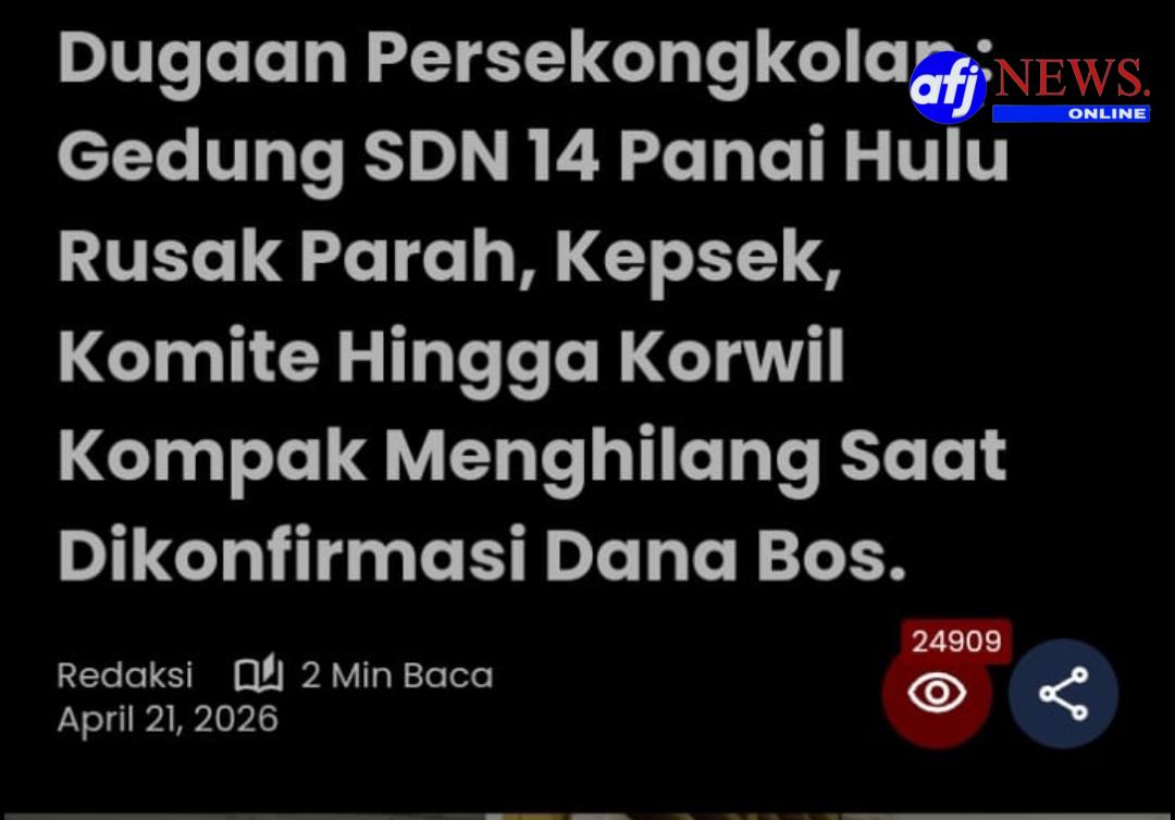 Labuhanbatu, AFJNews.Online – Sikap tertutup yang dipertonton oleh Kepala Dinas Pendidikan Kabupaten Labuhan Batu, Provinsi Sumatera Utara beserta jajarannya memicu polemik di tengah masyarakat. Kadis pendidikan enggan memberikan jawaban terkait kondisi bangunan SD Negeri 14 Panai Hulu, Desa Meranti Paham, Kecamatan Panai Hulu yang mengalami kerusakan sangat parah, meski upaya konfirmasi telah dilakukan oleh awak media ini.