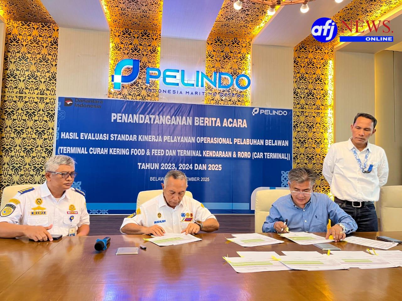 BELAWAN, AFJNews.online – PT Pelabuhan Indonesia (Persero) Regional 1 Belawan bersama Kantor Kesyahbandaran dan Otoritas Pelabuhan (KSOP) Utama Belawan melaksanakan penandatanganan Berita Acara Hasil Evaluasi Kinerja Pelayanan Operasional Pelabuhan Belawan.