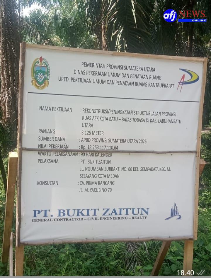 Labuhanbatu Utara, AFJNews.Online – Nama Pekerjaan : Rekonstruksi/ Peningkatan Struktur Jalan Provinsi Ruas Jalan Aek Kota Batu – Batas Tobasa Kabupaten Labuhanbatu Utara, Sumatera Utara sampai kini masih terus menjadi sorotan publik.