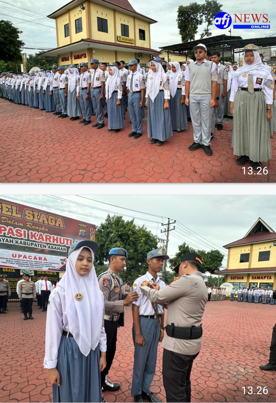 ASAHAN, AFJNews.online – Ada 236 pelajar yang dilantik Polres Asahan menjadi Polisi Siswa. Ratusan pelajar ini terdiri dari 14 sekolah yang ada di Kabupaten Asahan. Kapolres Asahan AKBP Revi Nurvelani membenarkan hari ini pihaknya melakukan pelantikan Polisi Siswa yang diadakan di Lapangan Apel Polres Asahan yang dihadiri Wakil Bupati, Ketua DPRD Asahan, Tokoh Agama dan Tokoh Masyarakat.
