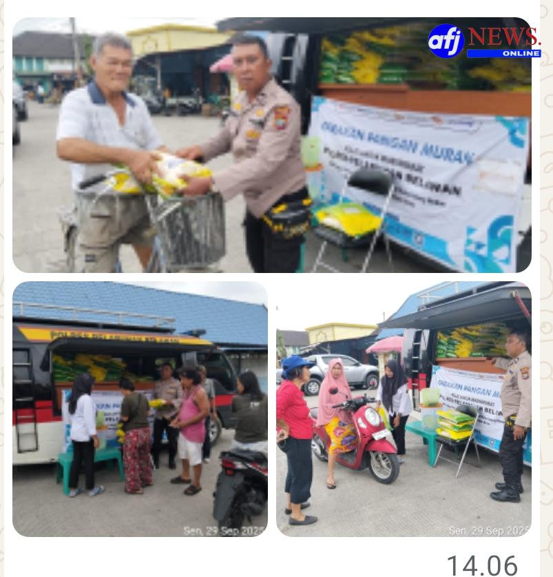 Belawan, AFJNews.online – Polres Pelabuhan Belawan pada Senin, 29 September 2025 melaksanakan kegiatan Gerakan Pangan Murah Polri dengan menjual beras SPHP dari Bulog kepada warga di Jalan Selebes, Kelurahan Belawan II. Kegiatan ini disambut antusias masyarakat yang berbondong-bondong membeli beras berkualitas baik dengan harga terjangkau.