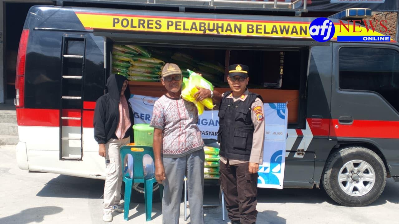 Belawan, AFJNews.online – Polres Pelabuhan Belawan melalui Satuan Binmas dan Polsek Hamparan Perak melaksanakan kegiatan Gerakan Pangan Murah di dua lokasi, yaitu Kantor Lurah Belawan Bahari dan Desa Klumpang Kebun. Dalam kegiatan tersebut, beras dari Bulog dijual kepada warga dengan harga terjangkau, yakni Rp58.000,- per karung berisi 5 Kg.