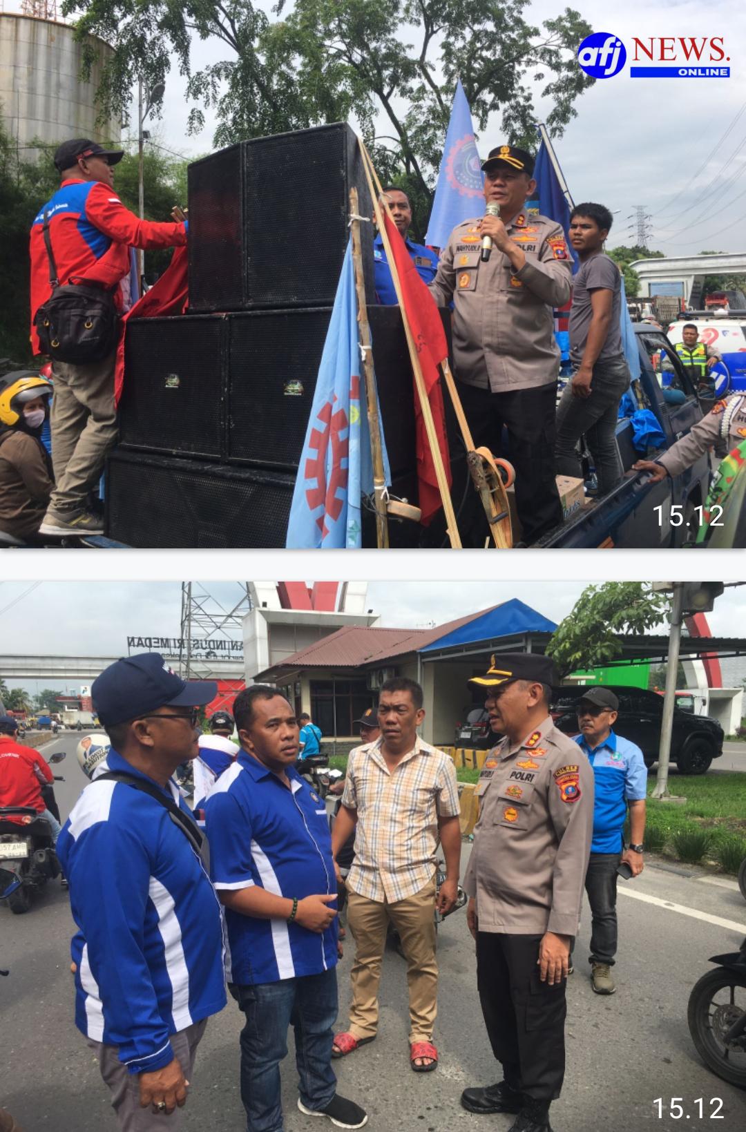 Polres Pelabuhan Belawan Kawal Pergeseran Massa Aksi Unjuk Rasa Ke Kantor Gubernur Sumut dan DPRD Sumut