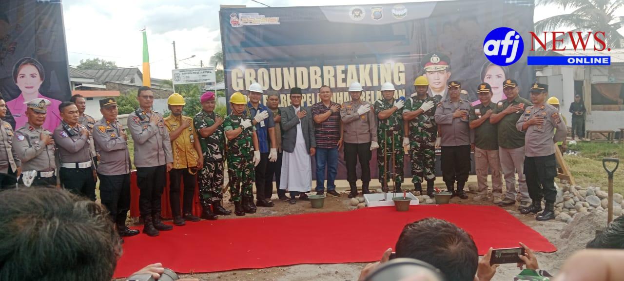 Peletakan batu pertama (ground breaking) secara simbolis dilakukan oleh Wakapolres Pelabuhan Belawan Kompol Dedy Dharma, SH., yang mewakili Plt. Kapolres Pelabuhan Belawan AKBP Wahyudi Rahman, SH., SIK., MM., CPHR., CBA., serta turut dihadiri oleh perwakilan dari berbagai unsur Forkopimda dan instansi terkait, antara lain Perwakilan Walikota Medan, Perwakilan Danyonmarhanlan I Belawan, Perwakilan Dandimtabes Medan, Perwakilan Kajari Belawan, dan Perwakilan Danpomal Lantamal I Belawan