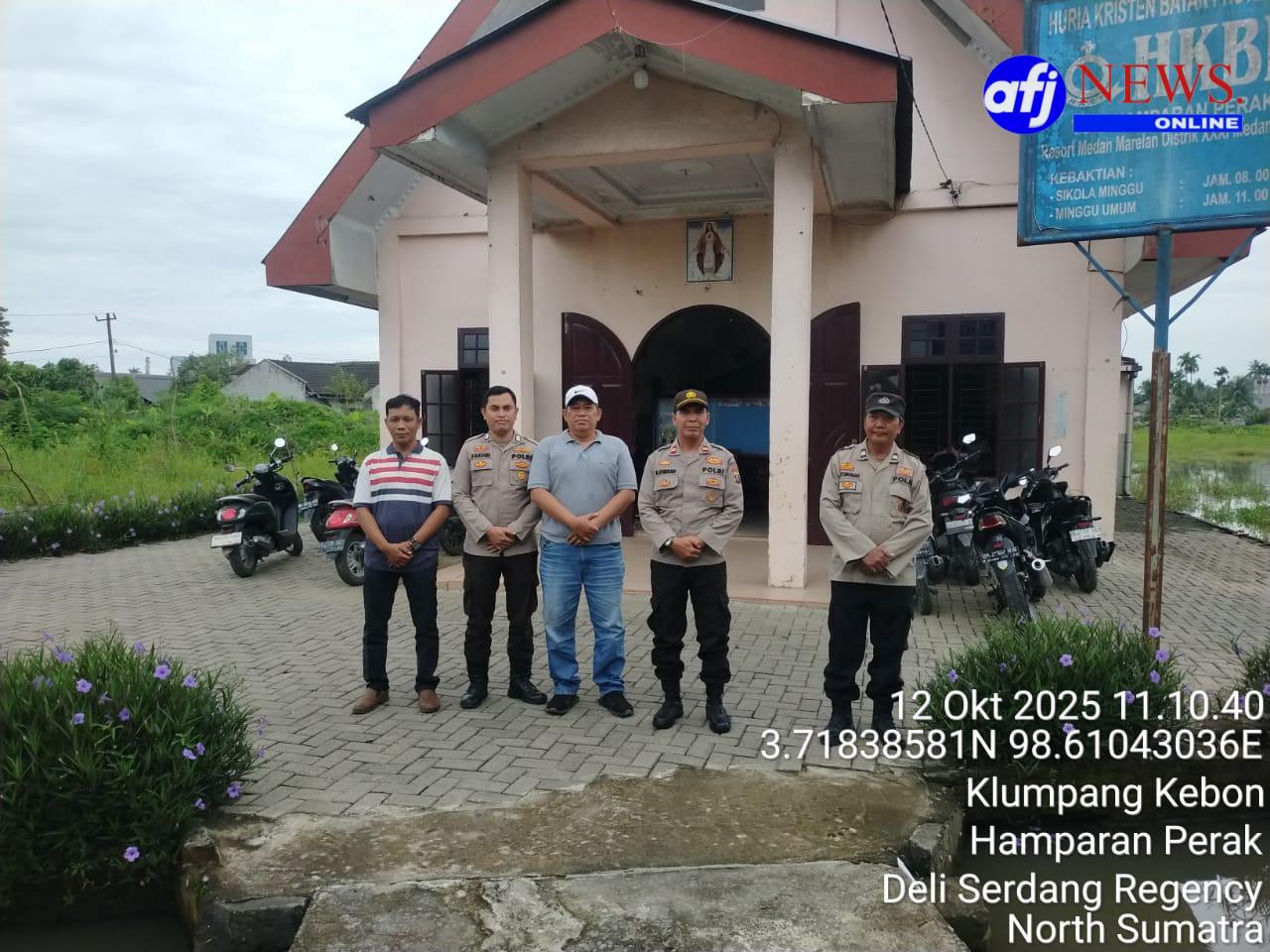 Hamparan Perak, AFJNews.online – Dalam rangka memberikan rasa aman dan nyaman kepada masyarakat yang melaksanakan ibadah, Personel Polsek Hamparan Perak Polres Pelabuhan Belawan melaksanakan kegiatan pengamanan ibadah di sejumlah gereja yang berada di wilayah hukumnya, pada Minggu (12/10/2025) mulai pukul 10.00 WIB hingga selesai.