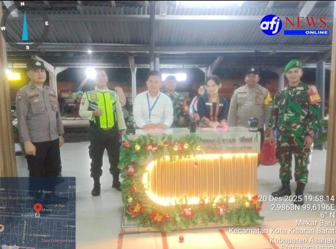 ASAHAN, AFJNews.online- Dalam rangka memberikan rasa aman dan nyaman kepada masyarakat selama periode Angkutan Natal Tahun 2025 dan Tahun Baru 2026, personel Polsek Kota Kisaran Polres Asahan melaksanakan kegiatan pengamanan di Stasiun Kereta Api (KAI) Kisaran, Sabtu malam (20/12/2025).