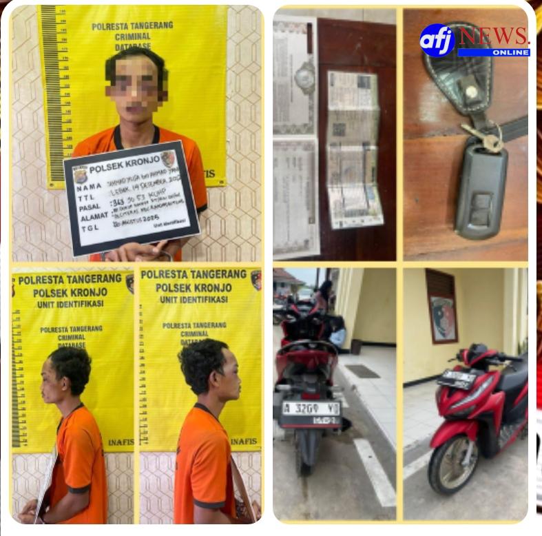 TANGERANG, AFJNews.online – Jajaran Polsek Kronjo Polresta Tangerang berhasil mengungkap kasus tindak pidana pencurian dengan pemberatan (curanmor) yang terjadi di Desa Gandaria, Kecamatan Mekar Baru, Kabupaten Tangerang, pada Rabu (20/8/2025) dini hari.