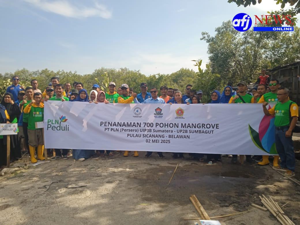 BELAWAN, AFJNews.Online – Bentuk kepedulian terhadap lingkungan. PT PLN (Persero) UIP3B (Unit Induk Penyaluran dan Pusat Pengatur Beban) Sumatera dan UP2B (Unit Pelaksana Pengatur Beban) Sumbagut berkolaborasi dengan DPC HNSI Kota Medan, Relawan Wak Young Sumatera Utara, Karang Taruna tanam 700 pohon mangrove di Kelurahan Sicanang Kecamatan Medan Belawan, Jumat (2/5/2025)