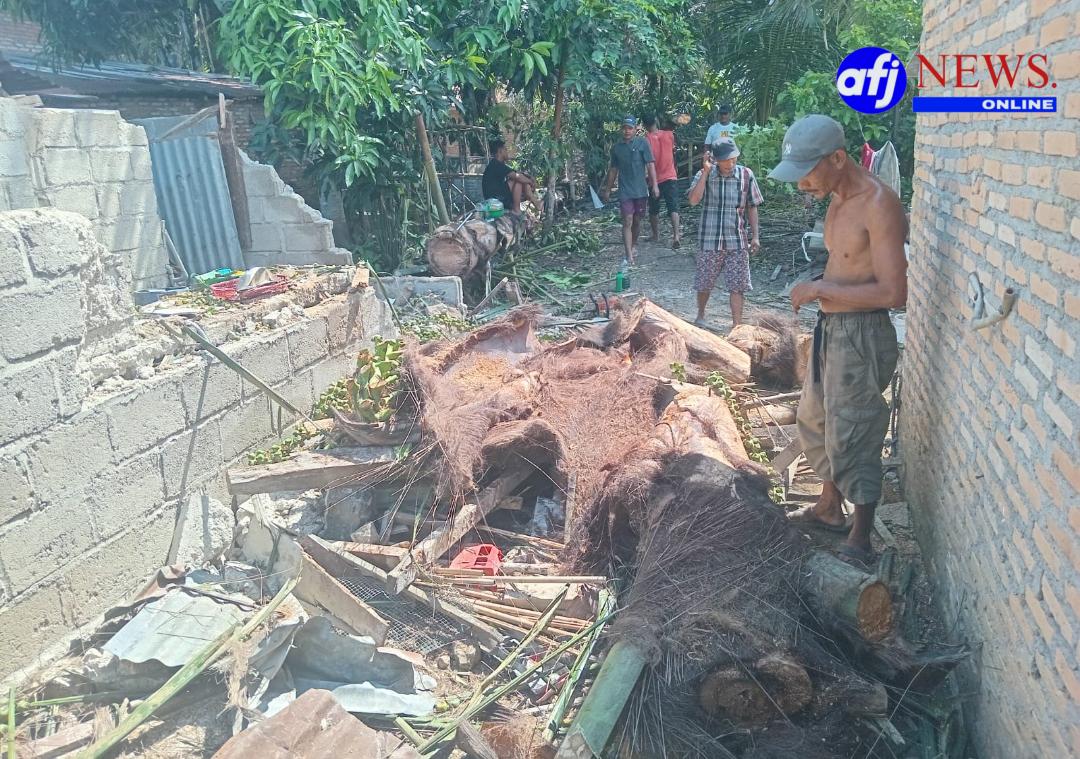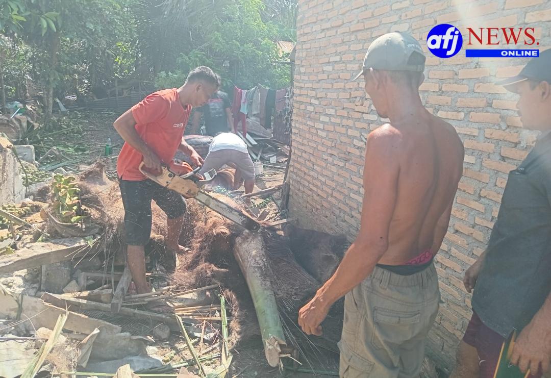 LABURA, AFJNews.online – Masyarakat bersama rt rw bergotong royong membersikan puing- puing rumah, juga memotong batang pohon aren yang menimpa rumah warga yang bernama ibu salama juga bapak basiron ,masyarakat Dusun VII Sukarakyat II Desa Batu Tunggal Kecamatan NA IX-X Kabupaten Labuhanbatu Utara akibat cuaca hujan yang di sertai angin kencang (Jum,at ,15/8/2025).