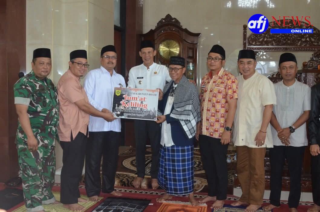 Penyaluran bantuan dilakukan Bupati Bogor, Rudy Susmanto saat melaksanakan program Jumat Keliling. Program ini bertujuan meningkatkan kenyamanan dan fasilitas ibadah, serta memastikan pembangunan merata, bukan hanya di pusat pemerintahan.
