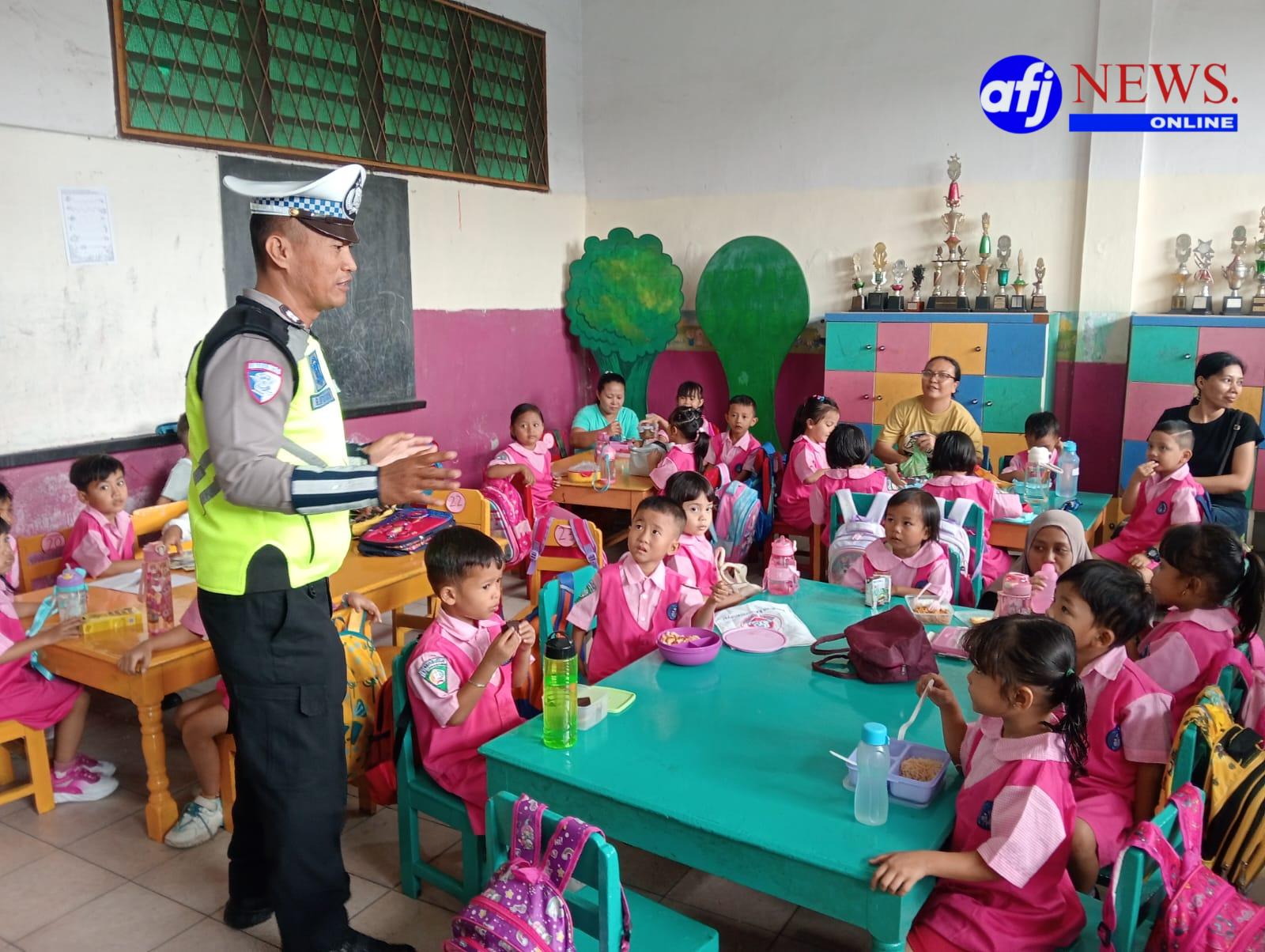 Belawan, AFJNews.online – Sat Lantas Polres Pelabuhan Belawan pada Senin, 29 September 2025 melaksanakan program Polantas Menyapa dengan menggelar kegiatan Polisi Sahabat Anak di PAUD Pangeran Antasari, Jalan Veteran Desa Helvetia. Kegiatan ini diisi dengan pengenalan rambu lalu lintas kepada anak-anak usia dini melalui metode bermain dan bernyanyi bersama.