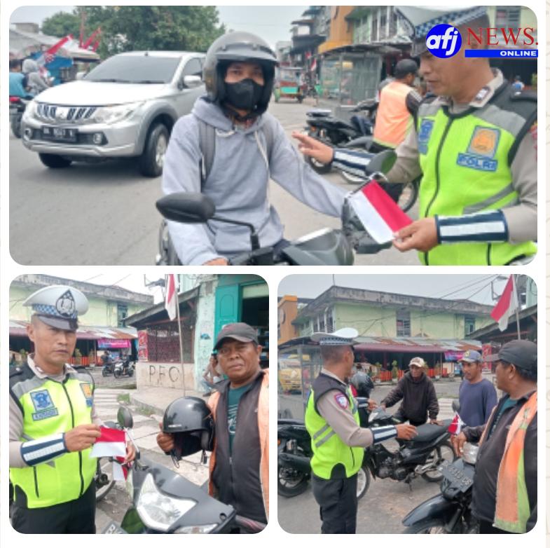 “Selain memberikan sosialisasi terkait kamseltibcar lantas, kami juga membagikan bendera merah putih untuk dipasang di kendaraan warga. Ini sebagai bentuk partisipasi dan kebanggaan dalam menyambut HUT RI,” ujar AKP Edward Simanjuntak.