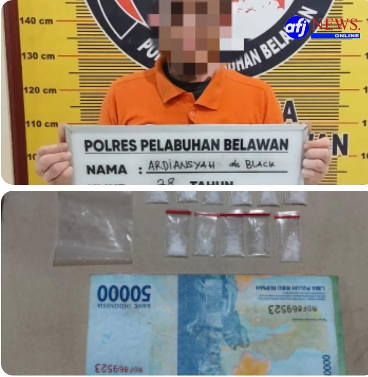Belawan, AFJNews.online – Sat Narkoba Polres Pelabuhan Belawan pada Selasa, 18 November 2025 berhasil melakukan penangkapan terhadap satu orang pengedar narkotika jenis sabu di Komplek Uka, Kelurahan Terjun. Tersangka yang ditangkap adalah Ardiansyah Siahaan (28) dengan barang bukti 11 plastik klip berisi sabu serta uang tunai Rp 90.000,-.