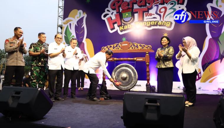 TANGERANG, AFJNews.online – Pemerintah Kabupaten (Pemkab) Tangerang menggelar pergelaran seni budaya dan pameran UMKM dalam rangka menyemarakkan Hari Ulang Tahun (HUT) ke-393 Kabupaten Tangerang. Acara tersebut dibuka Bupati Tangerang Moch Maesyal Rasyid yang hadir bersama Wakil Bupati Tangerang, Intan Nurul Hikmah.