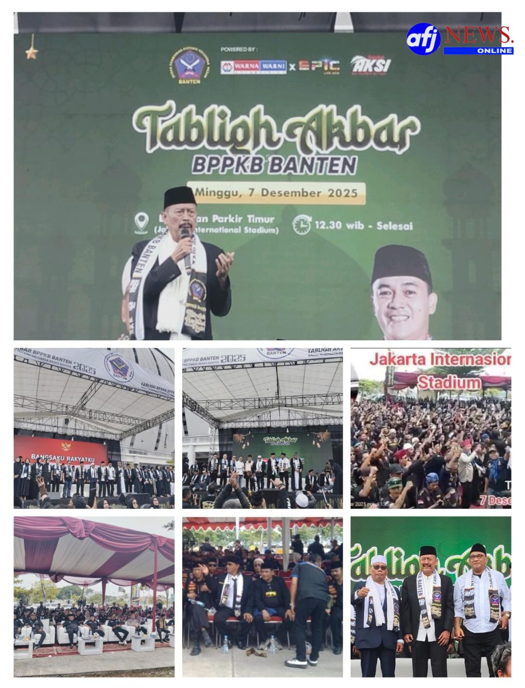 Jakarta, AFJNews.online – Minggu (07/12/2025), Ribuan jamaah dan anggota BPPKB Banten dari seluruh Indonesia membanjiri Stadion Jakarta International Stadium (JIS) dalam acara Tabligh Akbar yang digelar oleh DPD BPPKB Banten DKI Jakarta. Acara yang diprakarsai oleh Ketua DPD DKI Jakarta Adi Kurnia berlangsung khusyuk dan meriah, dengan momen santunan kepada 1.000 anak yatim, donor darah, serta penggalangan donasi menjadi sorotan utama.
