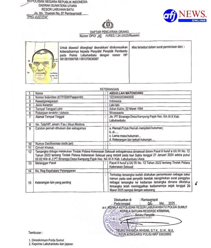 Setelah melalui proses penyelidikan mendalam dan mengumpulkan bukti yang cukup, pihak Polres Labuhan Batu secara resmi mengeluarkan Status DPO untuk AM.