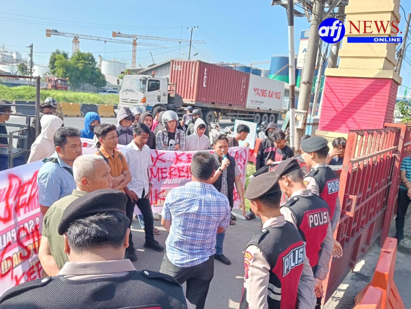 BELAWAN, AFJNews.online – Sejumlah massa yang mengatasnamakan masyarakat melakukan aksi unjuk rasa di depan pintu masuk Markas Kepolisian Resor (Mapolres) Pelabuhan Belawan pada kamis (16/04)