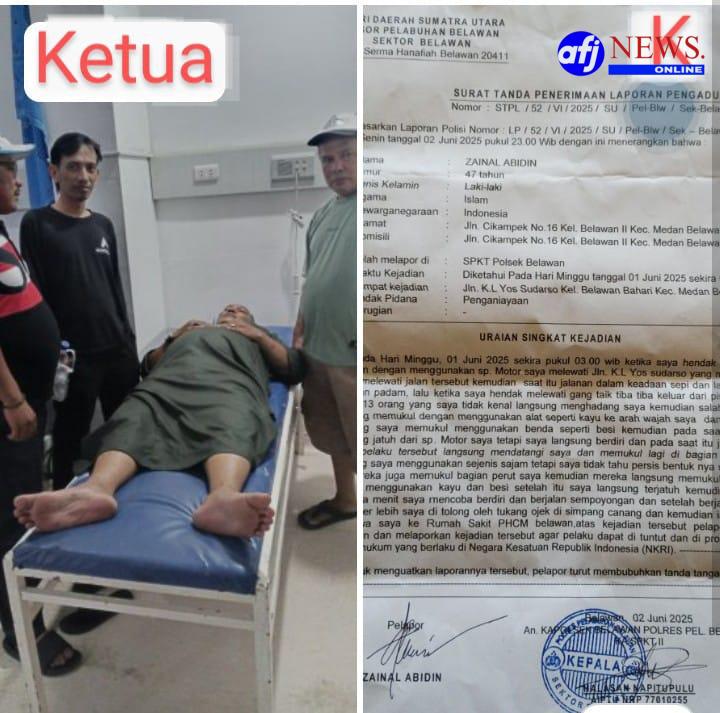 BELAWAN, AFJNews.online – Seorang wartawan media online nasional Pirnas Group, yang juga seorang konten kreator dengan sebutan #KetuaSeparoh diserang puluhan Orang Tak Kenal (OTK) di Jalan Yos Sudarso depan Hotel Budi Kelurahan Belawan Bahari daerah simpang Sicanang pada Minggu dini hari (01/06/2025) sekitar pukul 03.00 Wib.